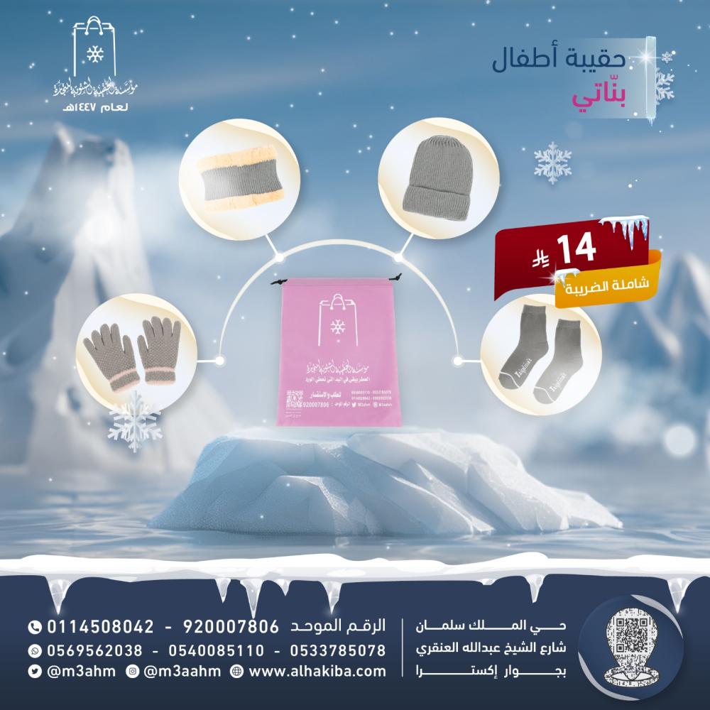 لا تفوت فرصة اقتناء حقيبة شتوية للأطفال الآن! سواء كنت تبحث عن أفضل حلول كسوة الشتاء أو ترغب في المساهمة في تقديم توزيعات شتوية للأطفال، هذه الحقيبة تقدم لك كل ما تحتاجه لضمان الحماية والدفء. اطلب الآن واستمتع بأفضل العروض!