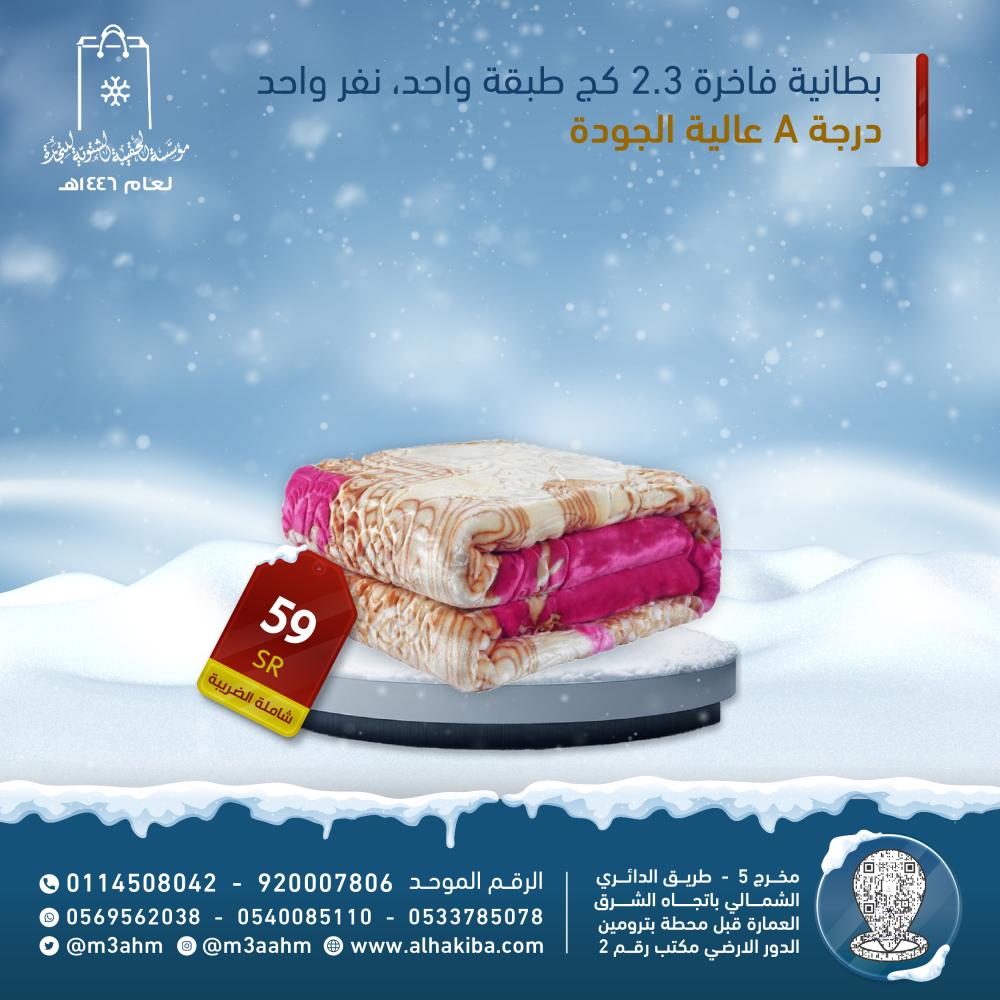بطانية صوف شتوية فاخرة من توزيعات الشتاء لمؤسسة الحقيبة الشتوية مصنوعة من أفضل الخامات مثل الصوف والفرو الناعم، مما يجعلها مثالية للاستخدام اليومي في الأجواء الباردة. المواد التي تم استخدامها في تصنيع هذه البطانية تضمن الحماية من البرودة القاسية وتوفر دفء مستمر.